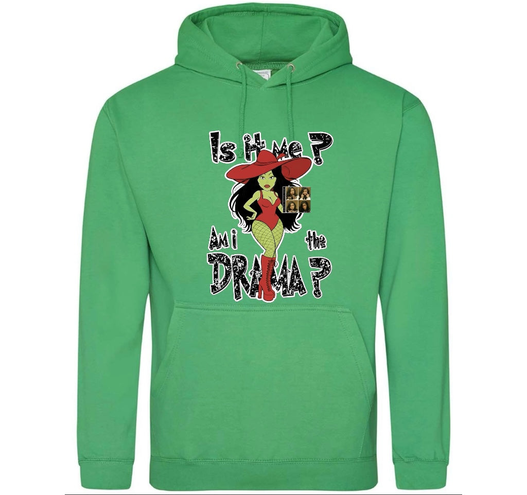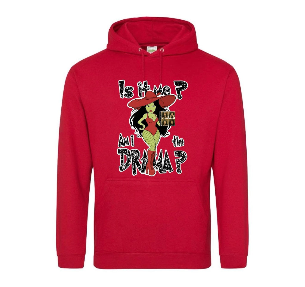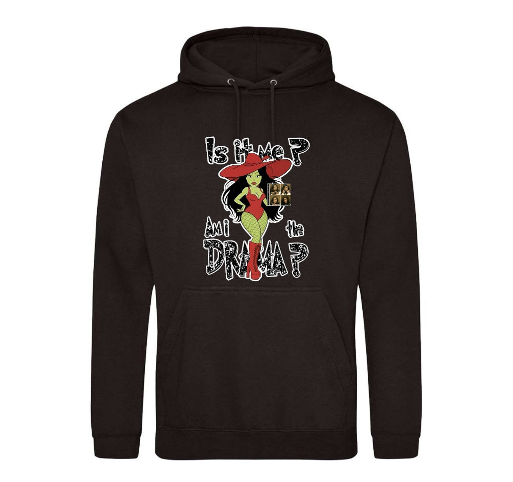 Hooded Sweatshirts, Sweatshirts and T Shirts with Am I the Drama Character Design 1 on front.