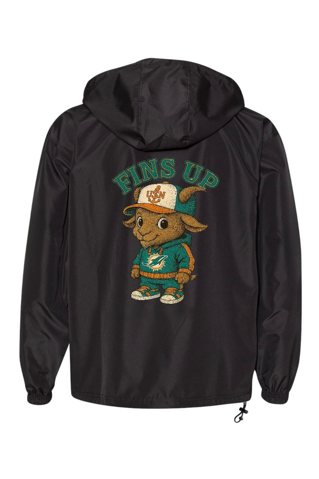 - Adjustable bungee drawcord at hood and bottom hem