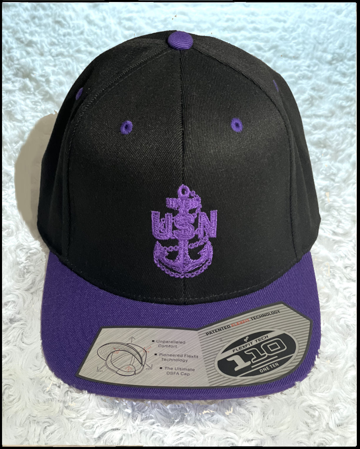 Black Flatbill SnapBack with Embroidered Purple Thread CPO Anchor.