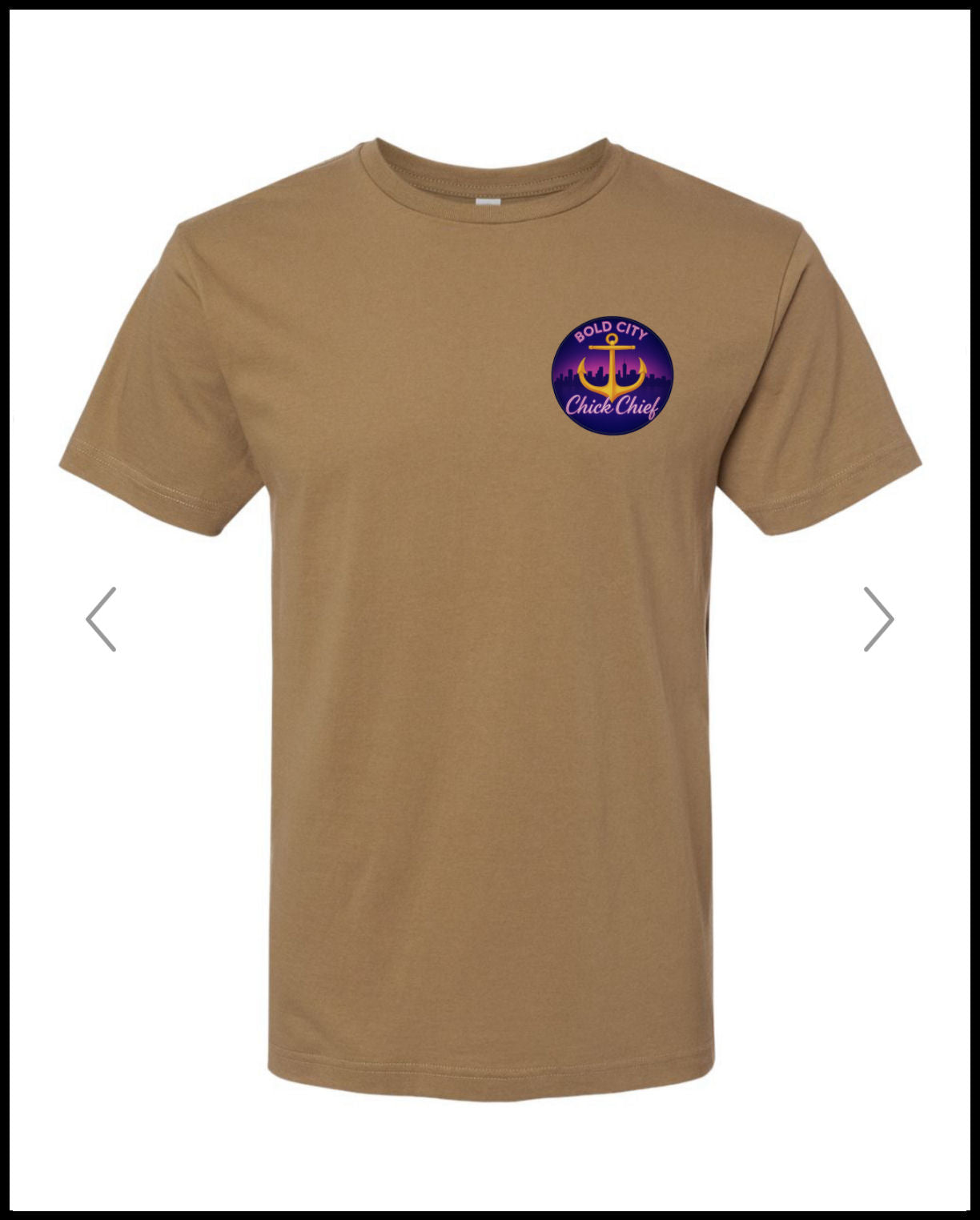 Black, Coyote Brown or Purple Crewneck T-Shirt with Front and Back logo design.