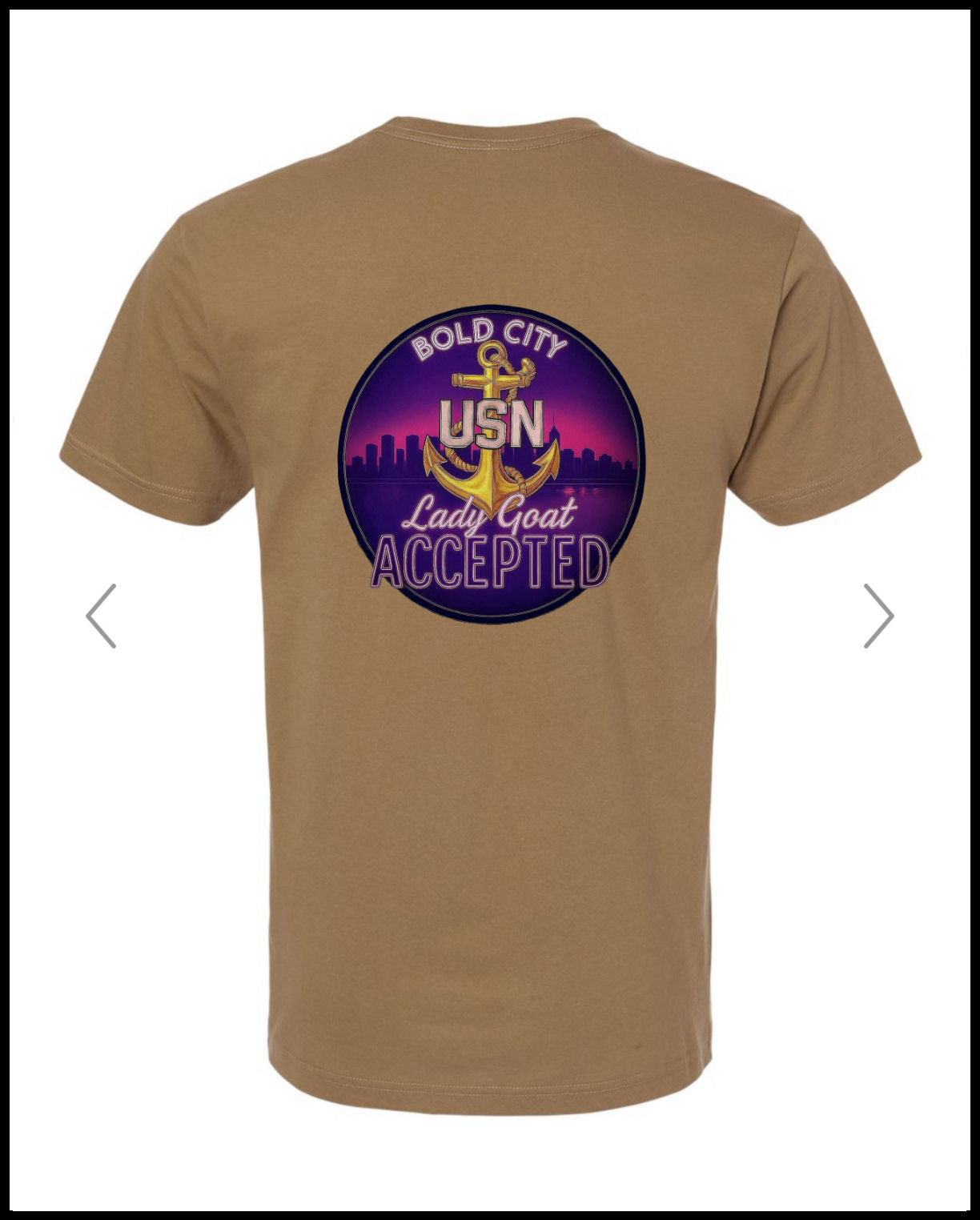 Black, Coyote Brown or Purple Crewneck T-Shirt with Front and Back logo design.