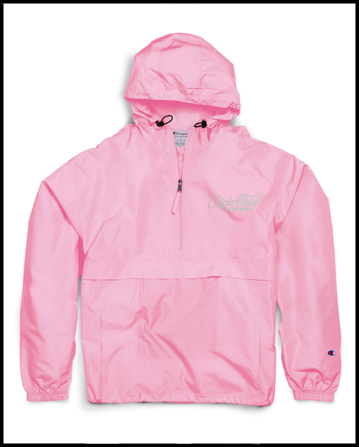 Pink Champion Quarter-Zip Windbreaker with Embroidered White Chick Chief design.