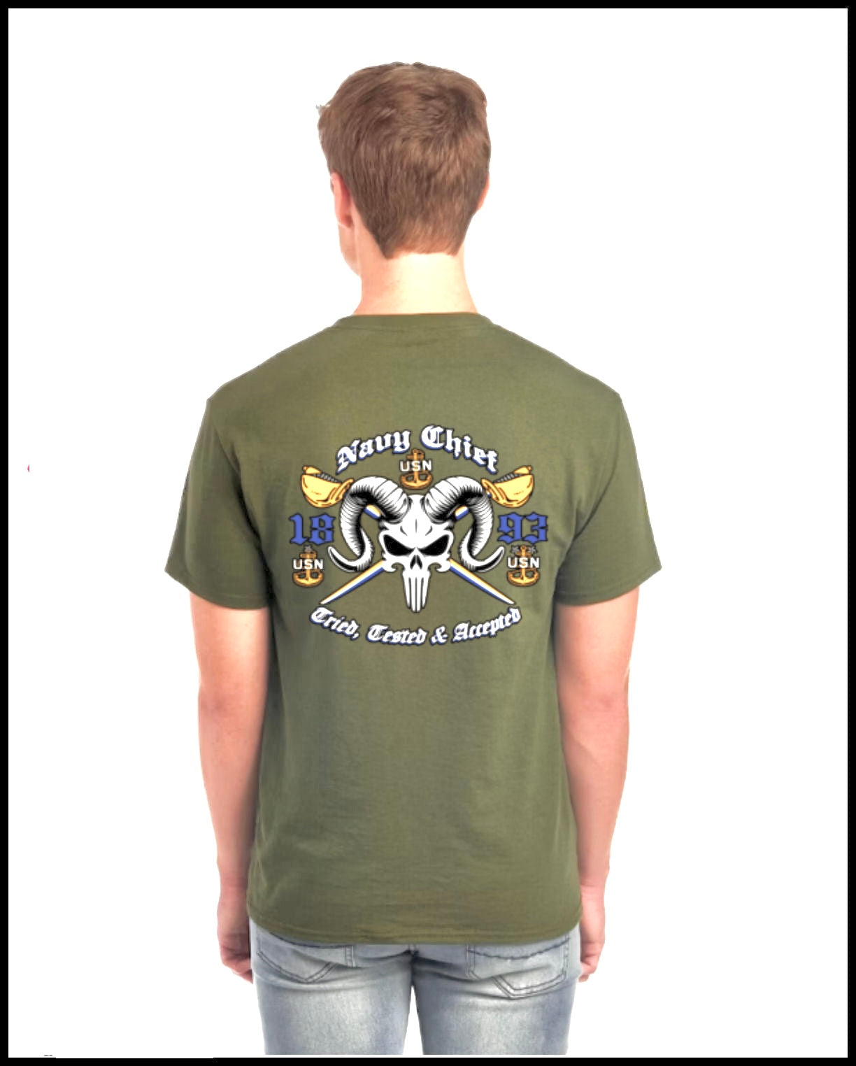 Chief Punisher Goat Military Green Cotton T-Shirt