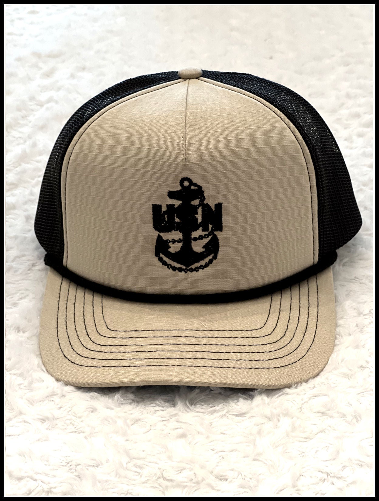 Khaki Lariat Ripstop Trucker Hat with Black CPO Anchor