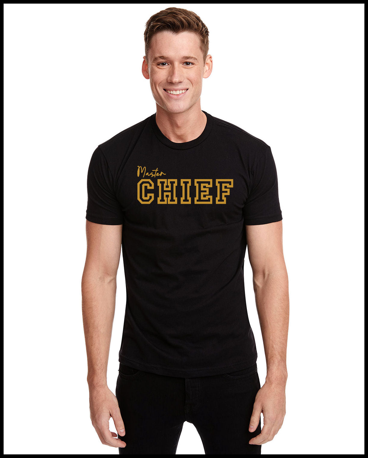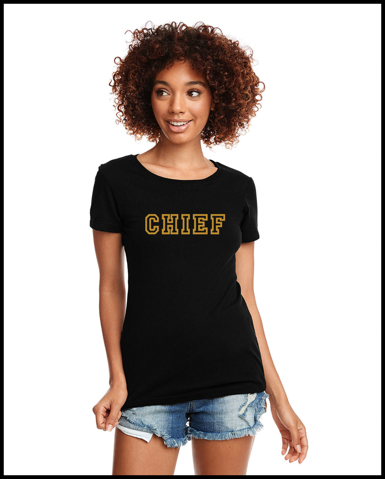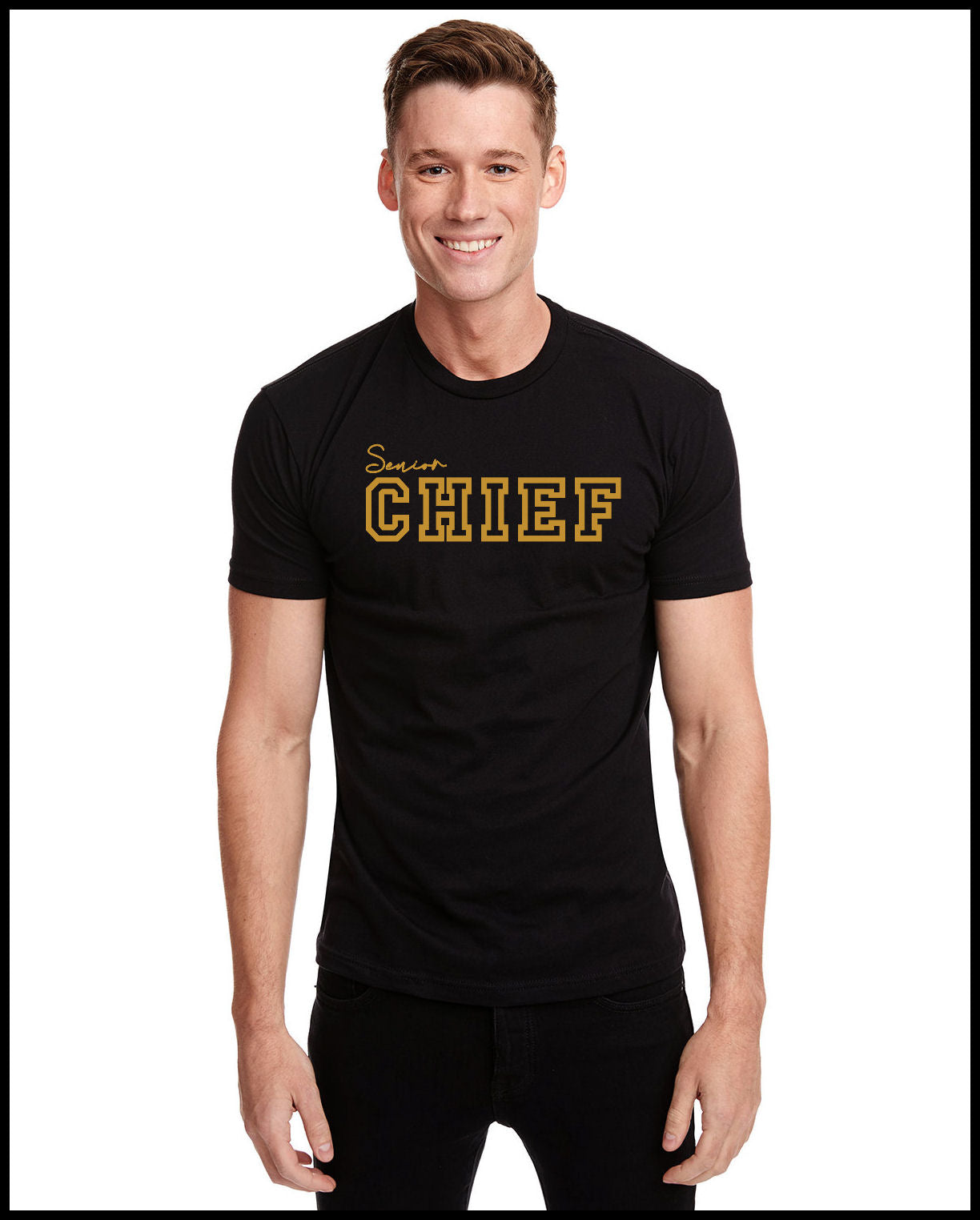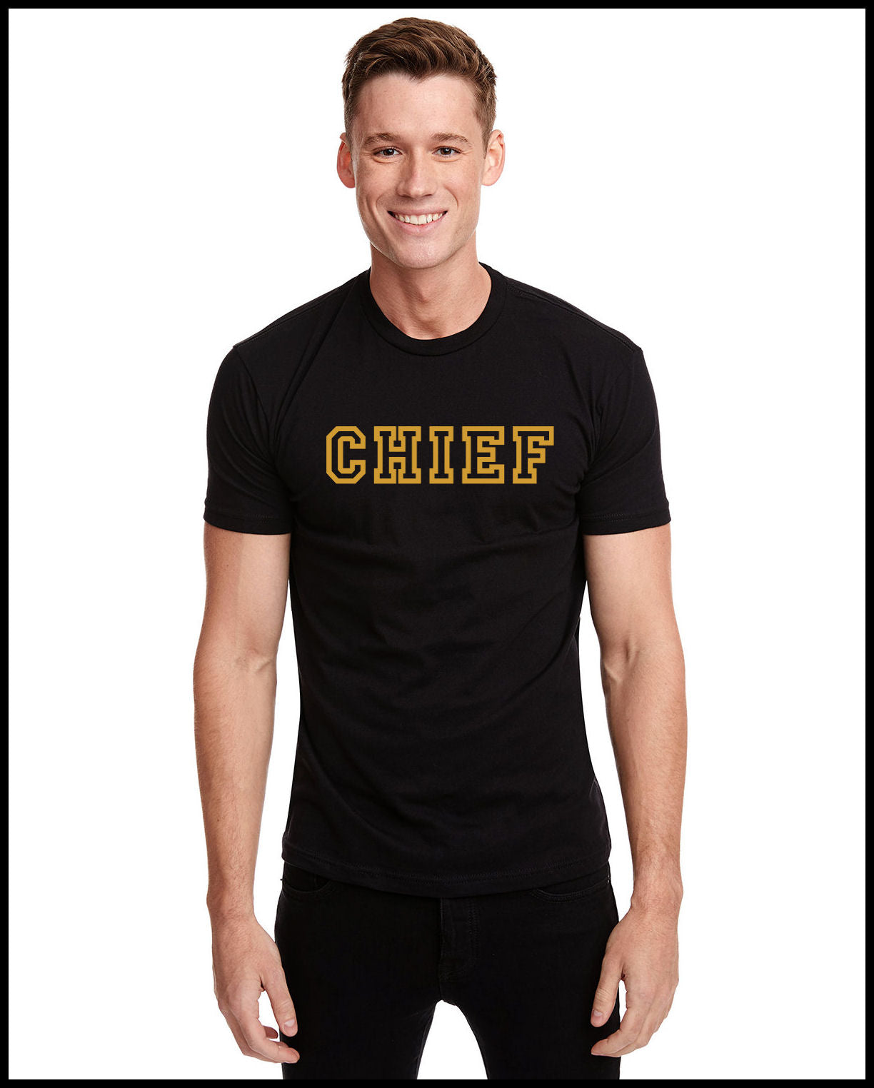 Black Crewneck T-Shirt with Khaki Chief Logo Design.
