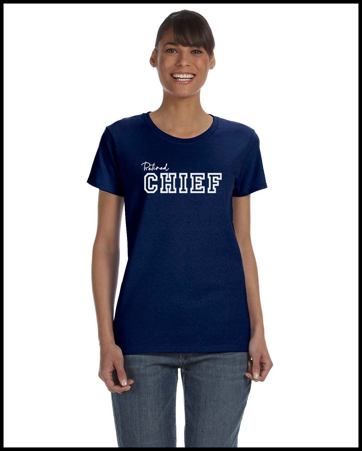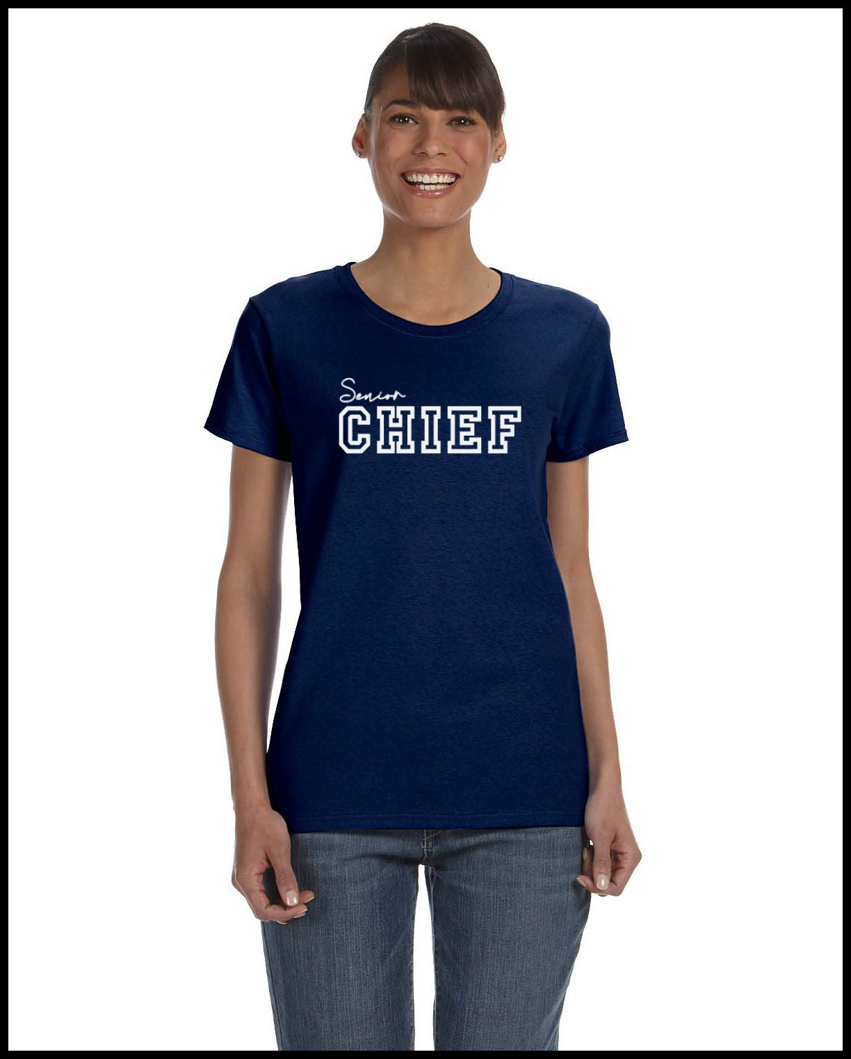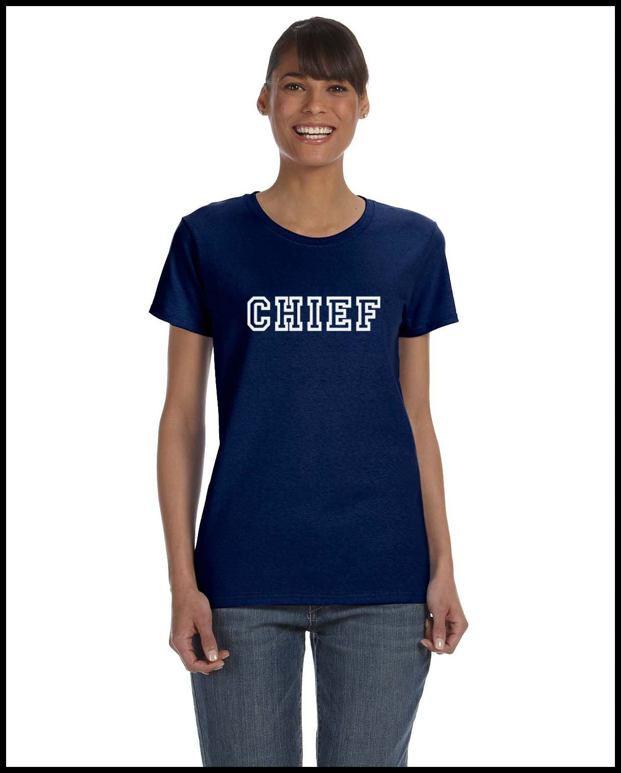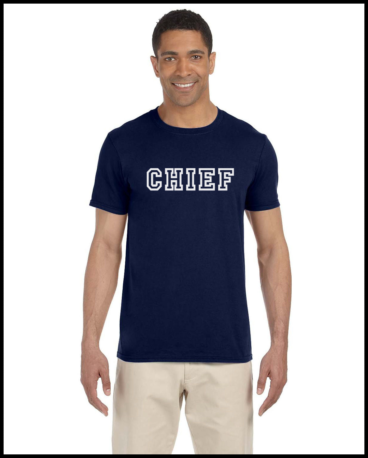 Navy Crewneck T-Shirt with Whote Chief Logo Design