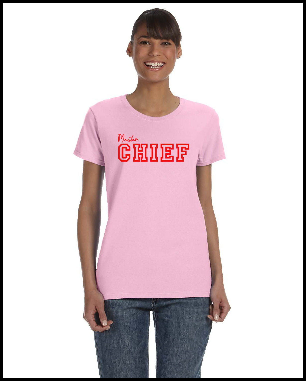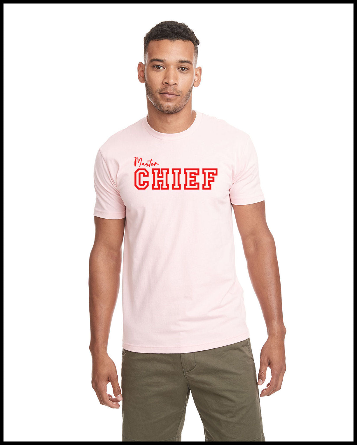 Light Pink Crewneck T-Shirt with Red Chief Logo Design. 100% Cotton