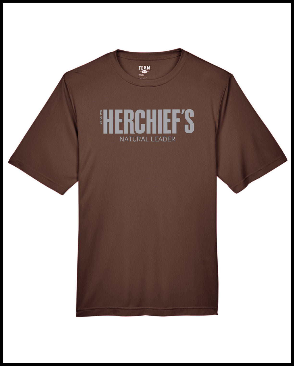 Brown Crewneck T-Shirt with Grey Design. 100% Cotton
