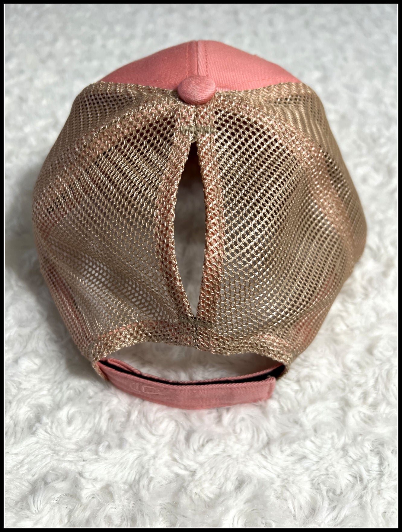 Light Coral and Tan CPO Ponytail Trucker Hat