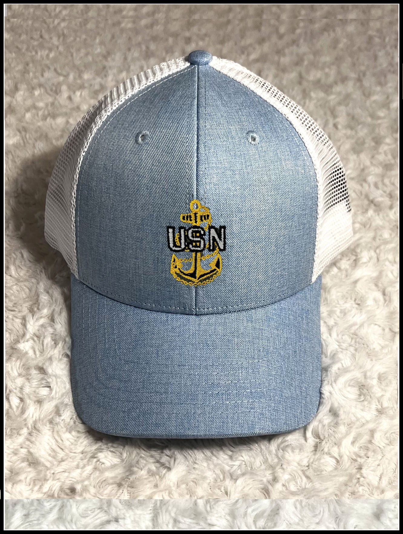 Light Blue Hat with Gold Embroidered CPO Anchor