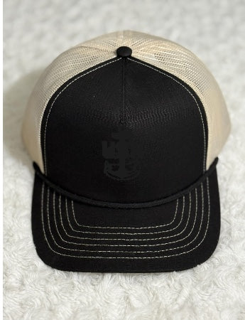 Black and Khaki Lariat Ripstop Trucker Hat with CPO Anchor