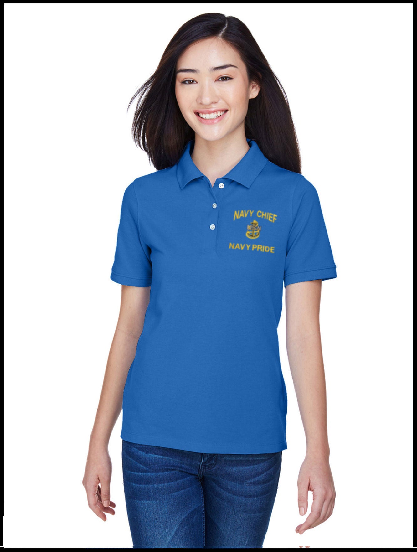 Ladies Piqué CPO Polo Shirt Royal Blue Navy Chief, Navy Pride 1 Anchor