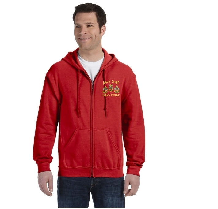 Navy Chief Navy Pride Embroidered Red Zipped Hooded Sweatshirt
