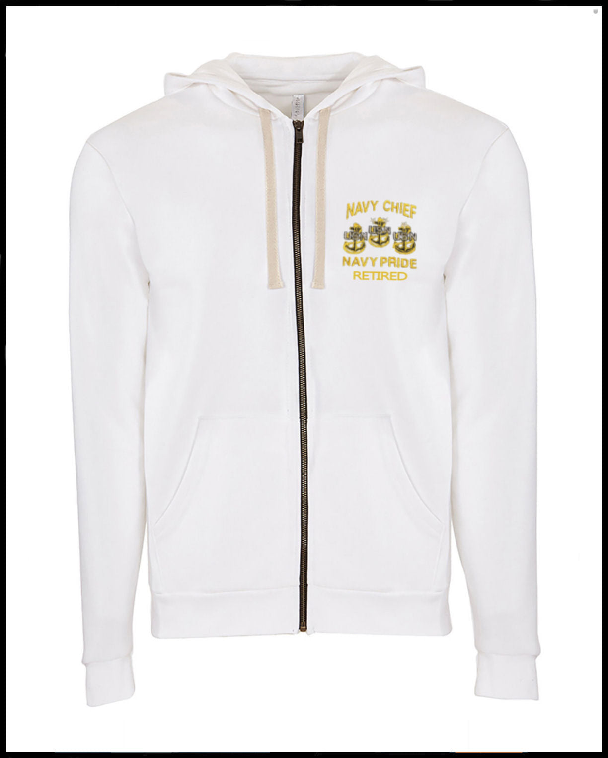 Retired Navy Chief Embroidered Off-White Zipped Hooded Sweatshirt