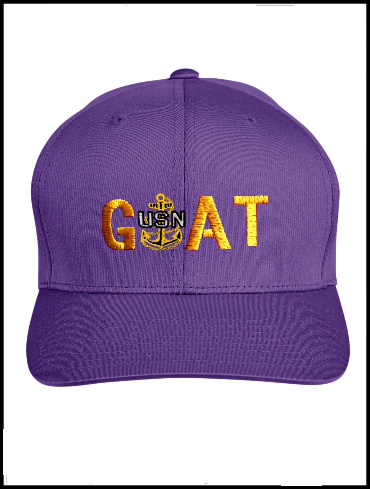Purple hat with Gold GOAT Design. Optional “Chick Chief" or “Retired” Embroidered on the back of the hat. SnapBack, one size fits most.
